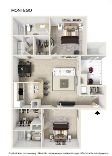 Apartment Model: Montego$1,2502 Bedroom, 2 Bath, 951 sq ftAvailable Now![]()