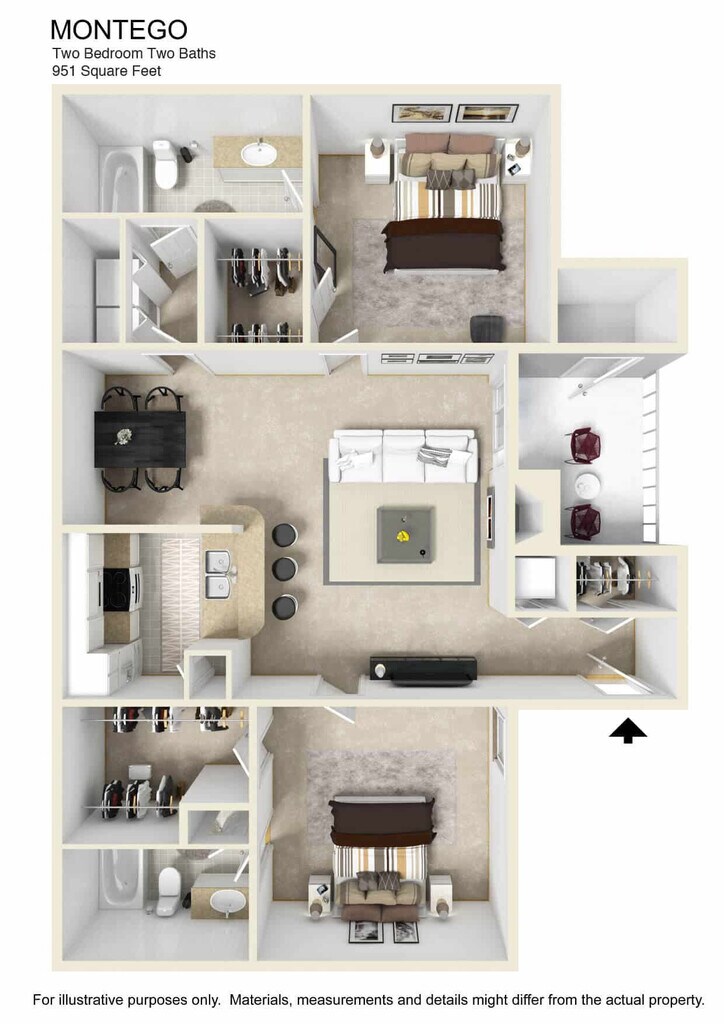 2 Beds, 2 Baths, 951 sq ftAvailable NowModel Gallery