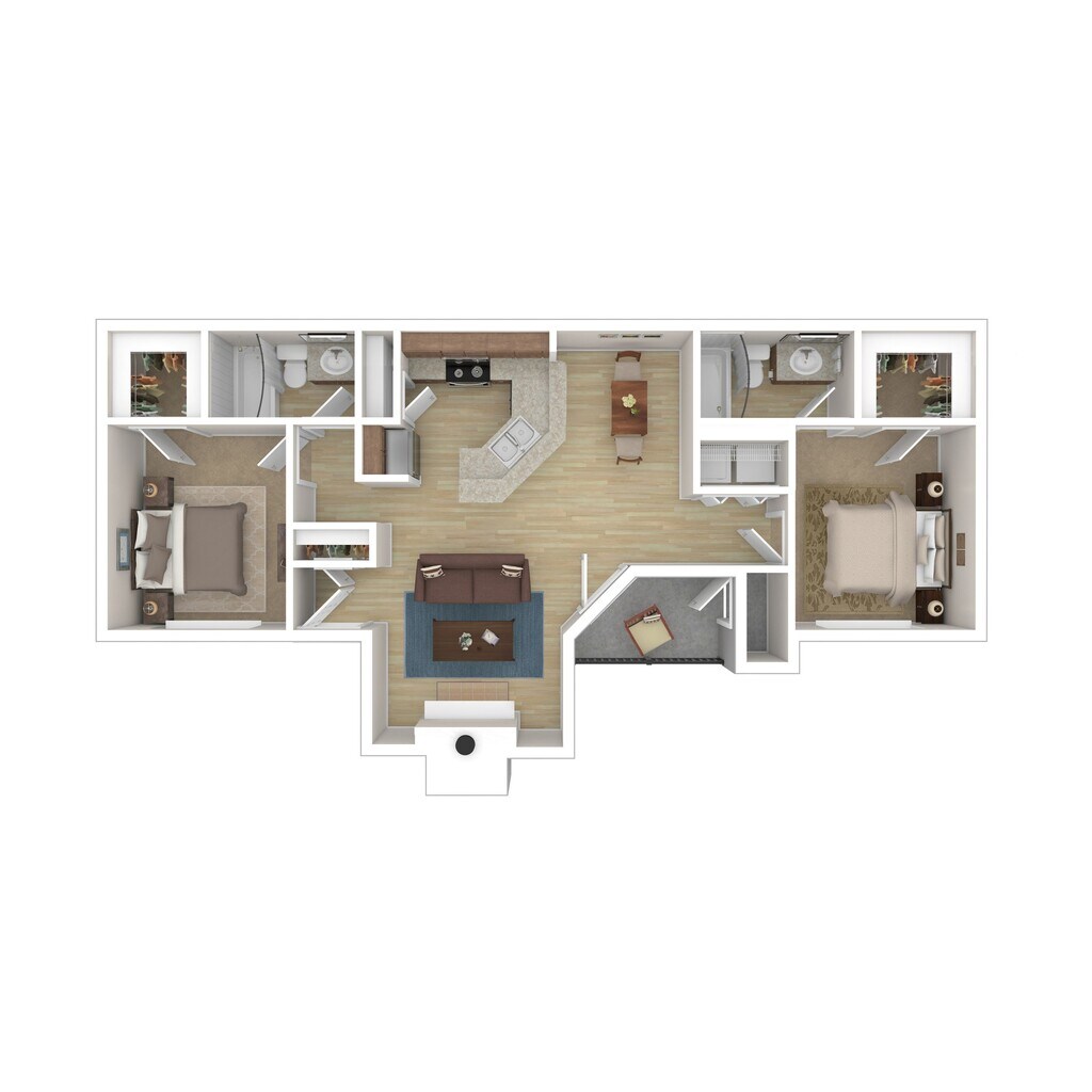 2 Beds, 2 Baths, 1062 sq ftAvailable NowLargest 2 BedroomThis is the largest 2 Bedroom at this PropertyModel Gallery