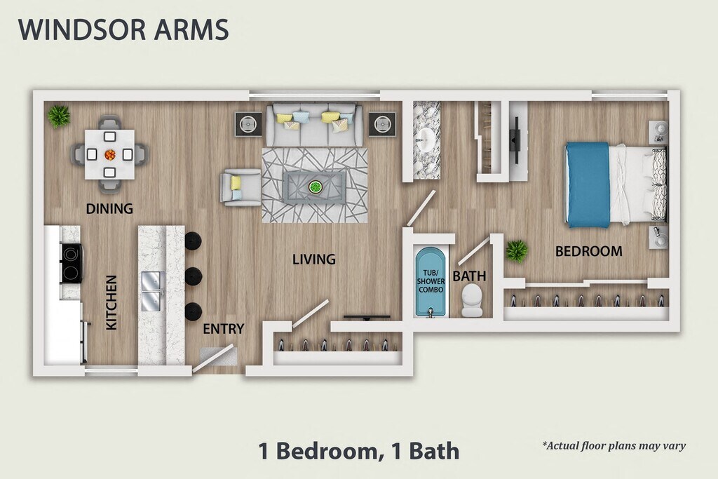1 Bed 1 Bath - Floorplan 2 Apartment Unit: 18Apartment Model: 1 Bed 1 Bath1 Bedroom, 1 Bath, 588 sq ftAvailable Now![]()