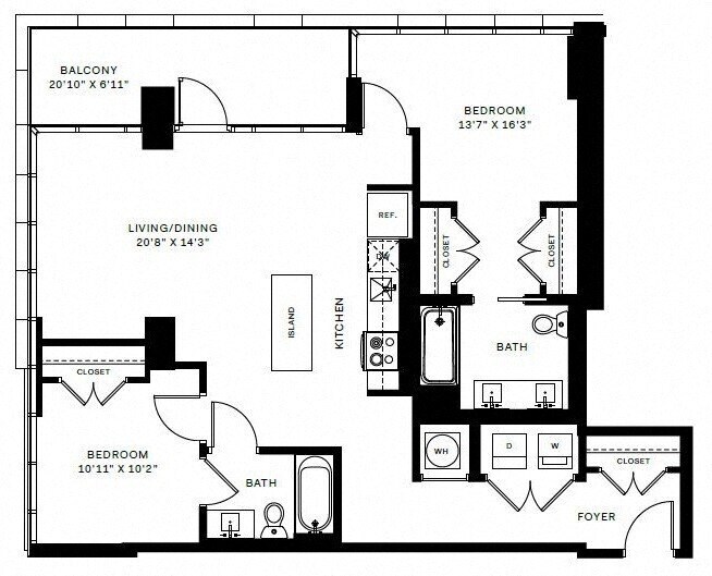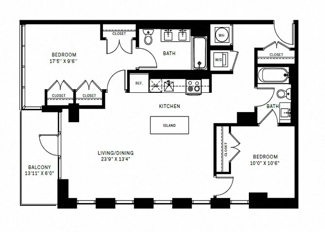 A4 - Floorplan 1 Apartment Unit: 0905Apartment Model: A4$2,2071 Bedroom, 1 Bath, 649 sq ftAvailable NowFloorplan A11