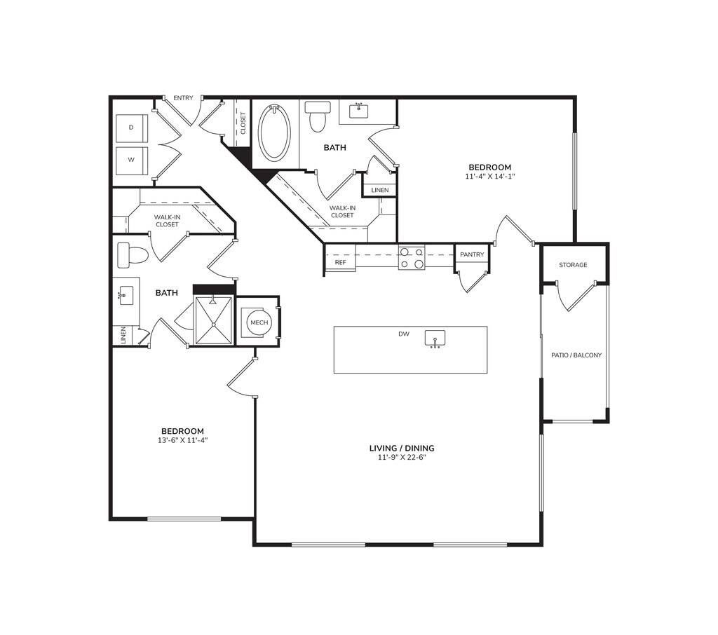 B2 - Floorplan Apartment Unit: 2134Apartment Model: B22 Bedroom, 2 Bath, 1197 sq ftAvailable NowApartment Unit: 2115Apartment Model: B22 Bedroom, 2 Bath, 1197 sq ftAvailable April 30, 2026Floorplan B3