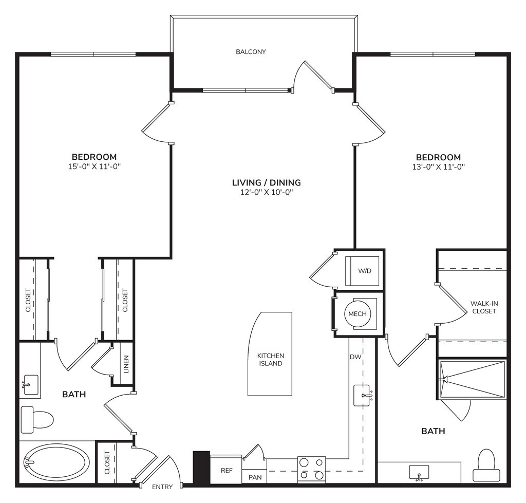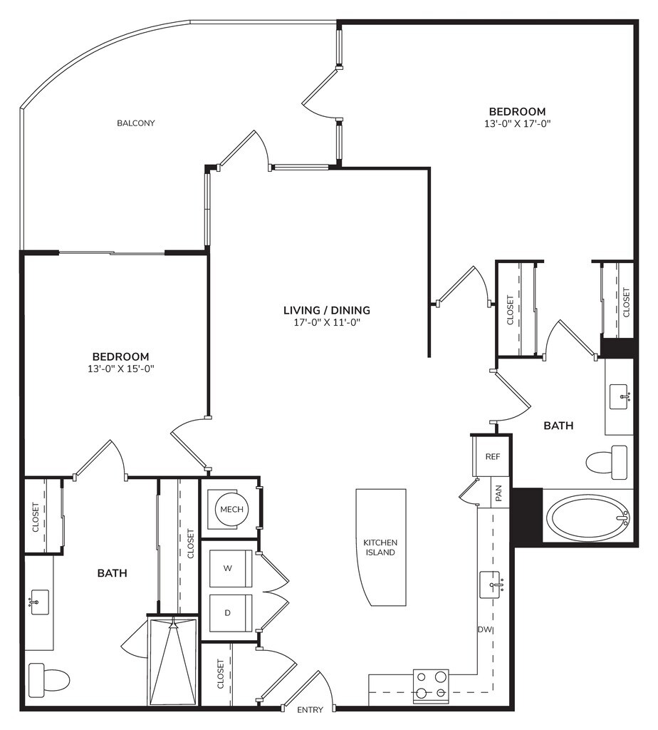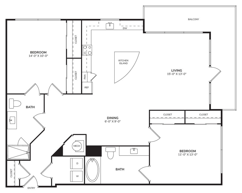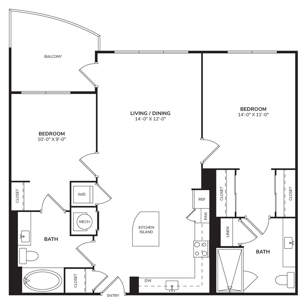 2 Beds, 2 Baths, 1259 sq ftAvailable NowLargest 2 BedroomThis is the largest 2 Bedroom at this PropertyModel Gallery