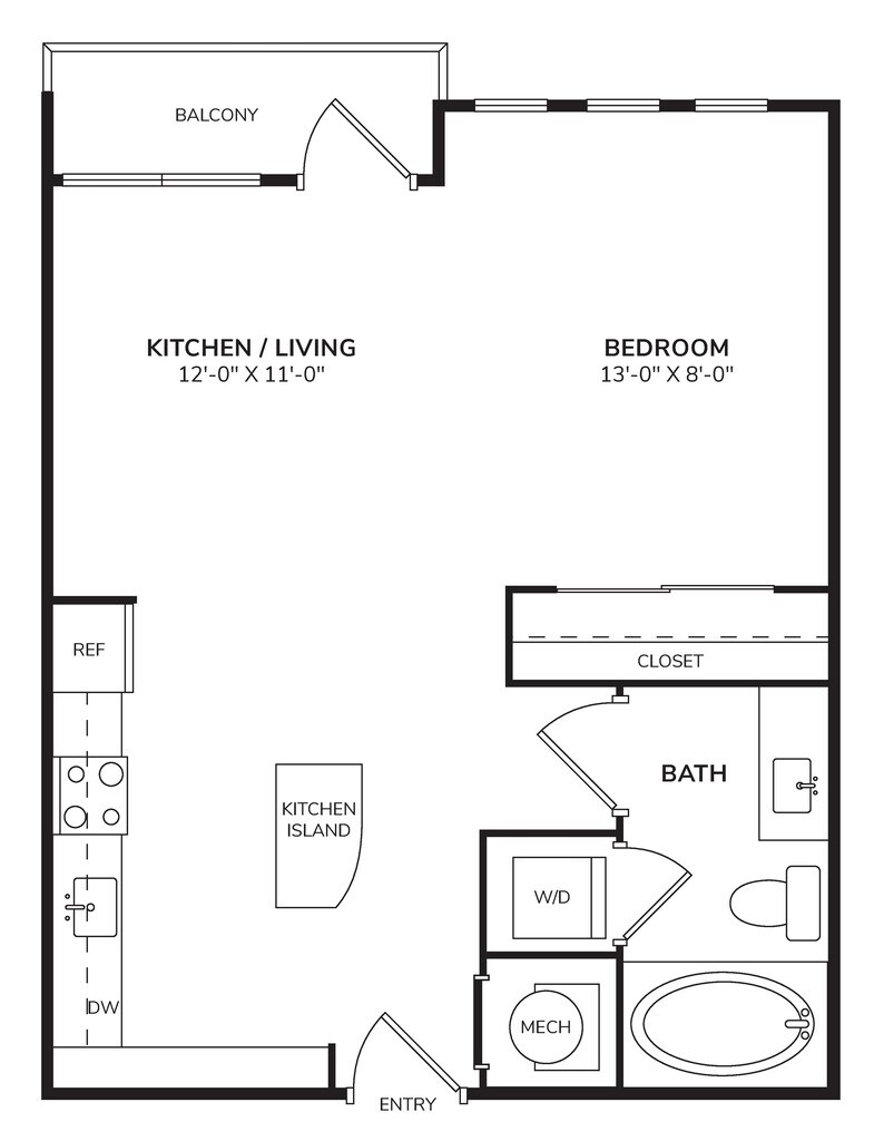 Studio, 1 Bath, 550 sq ftAvailable NowModel Gallery