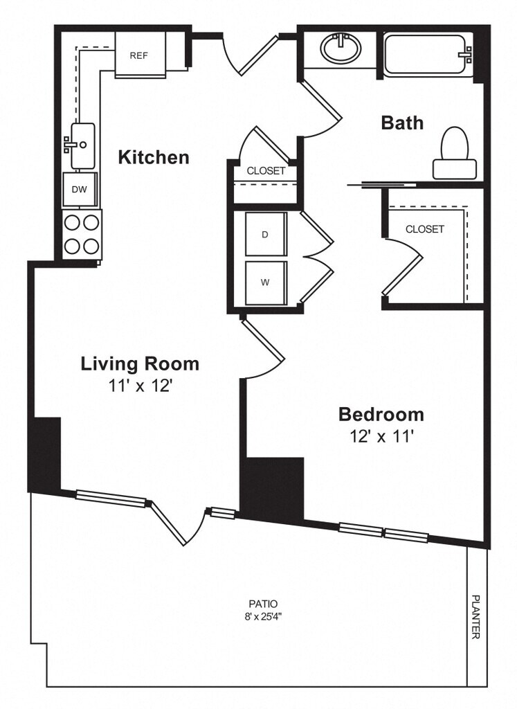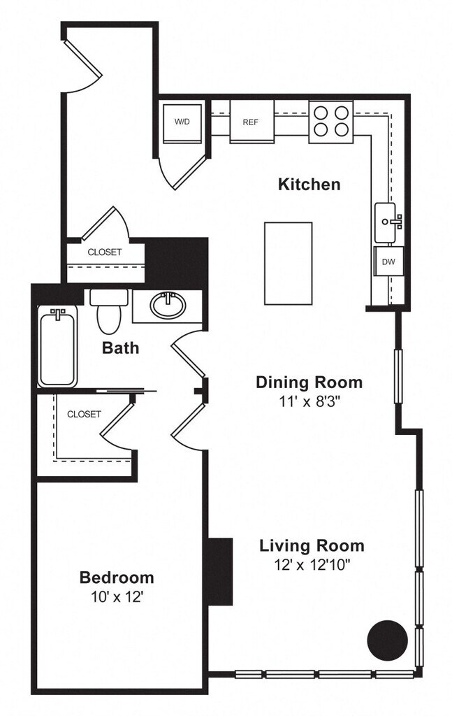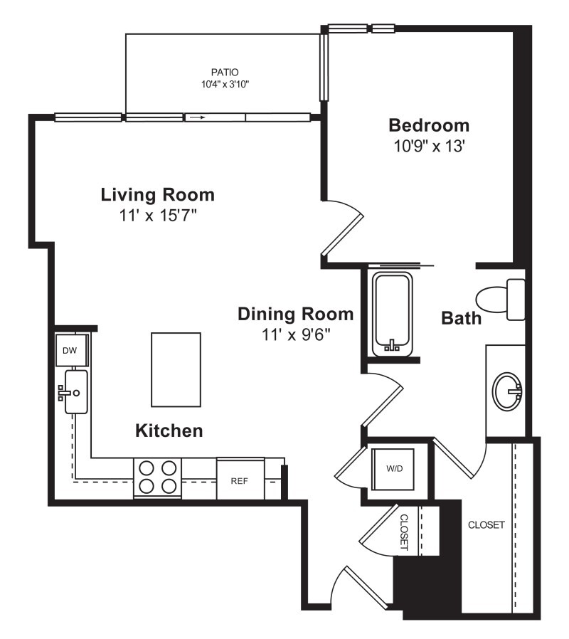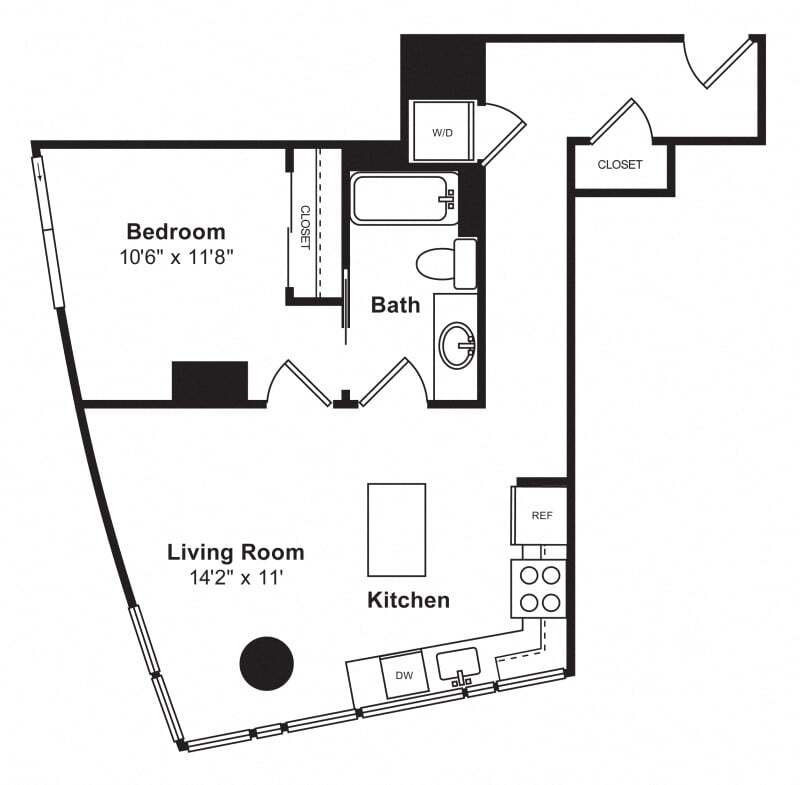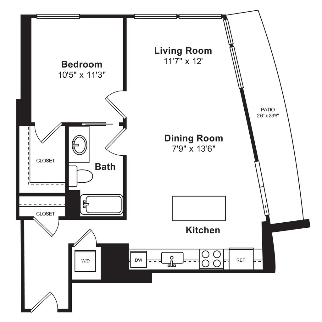 Apartment Model: A101 Bedroom, 1 Bath, 785 sq ftAvailable Now![]()