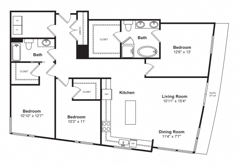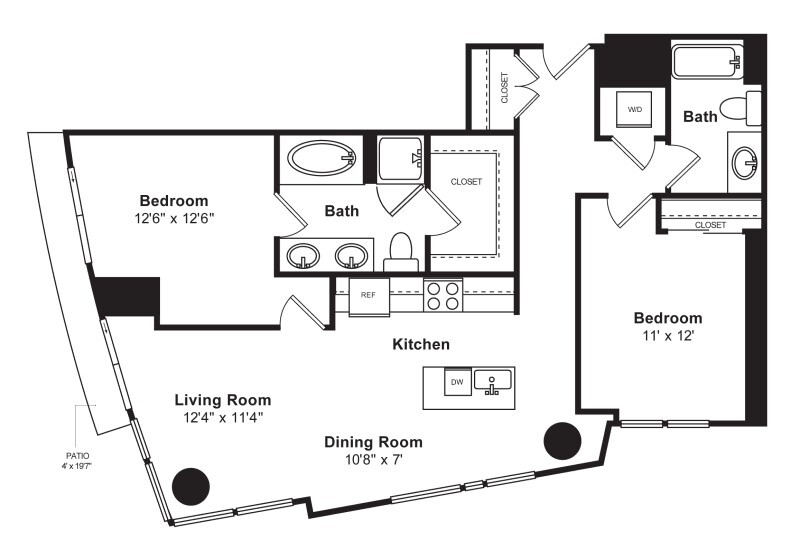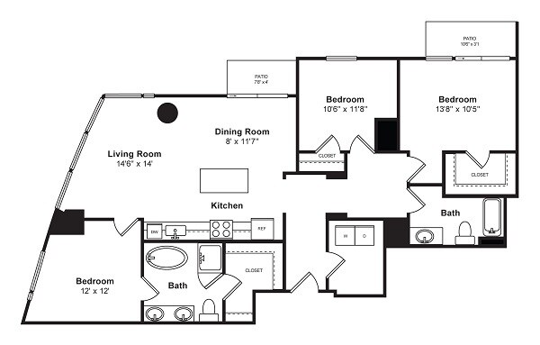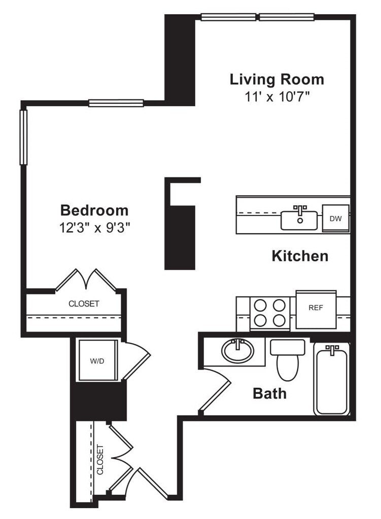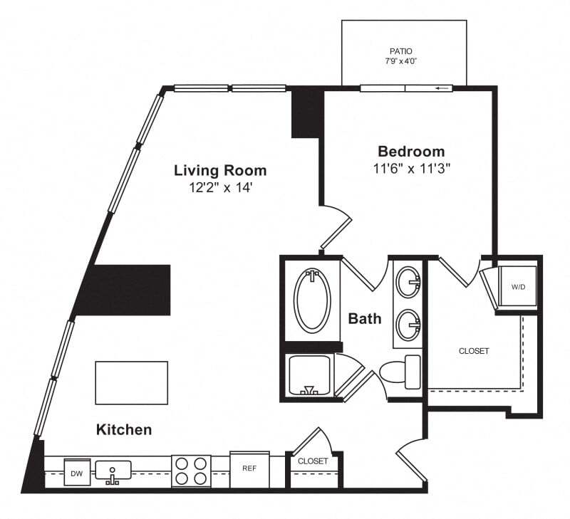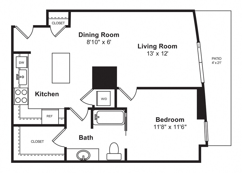 Apartment Model: A101 Bedroom, 1 Bath, 785 sq ftAvailable Now![]()