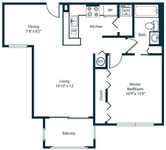 1 Bed, 1 Bath, 858 sq ftAvailable NowLargest 1 BedroomThis is the largest 1 Bedroom at this PropertyModel Gallery