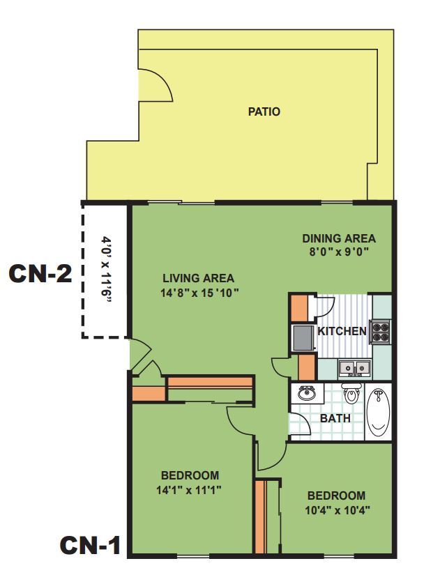 Two Bedroom One Bathroom (CN2) - Floorplan 1 Apartment Unit: 044Apartment Model: Two Bedroom One Bathroom (CN2)2 Bedroom, 1 Bath, 920 sq ftAvailable SoonTwo Bedroom One Bathroom (CN1)