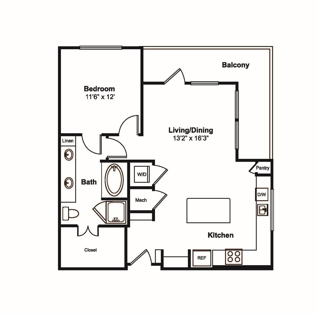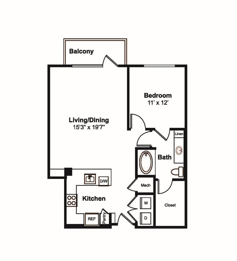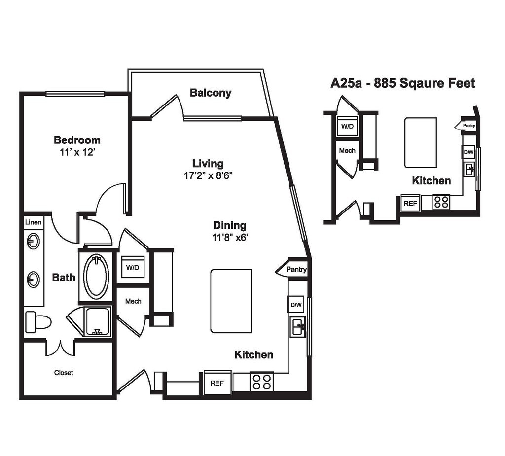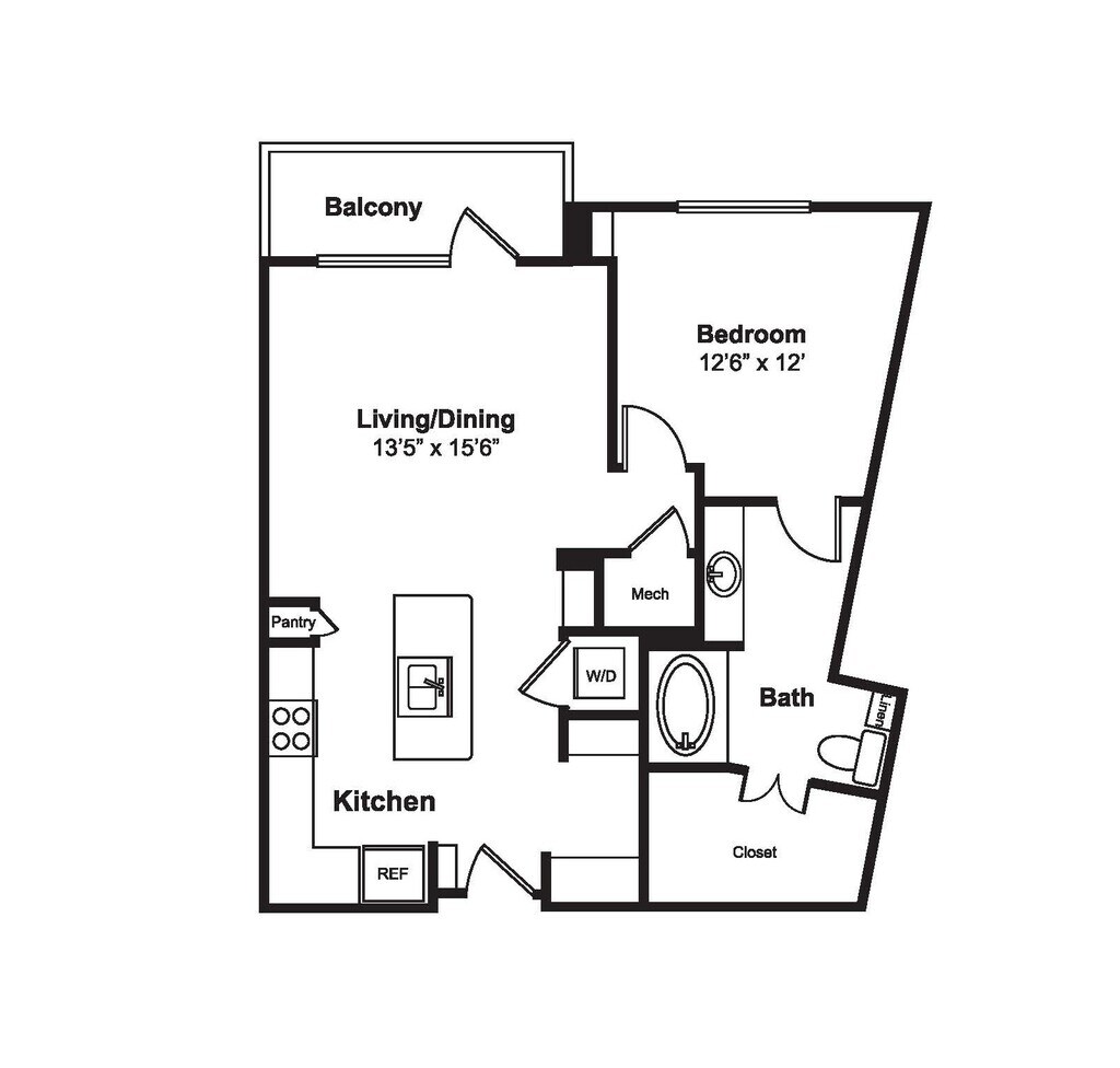 Apartment Model: A1From $1,7891 Bedroom, 1 Bath, 723-735 sq ftAvailable Now![]()