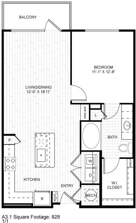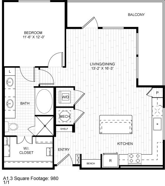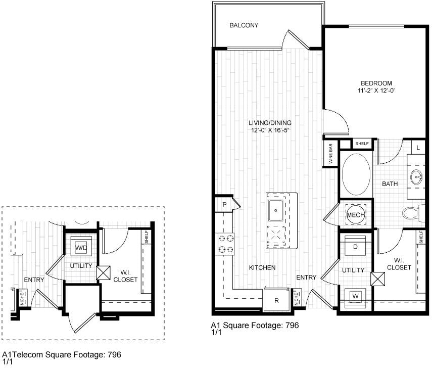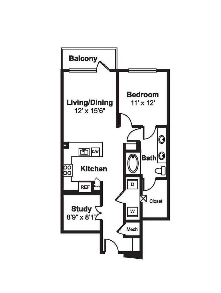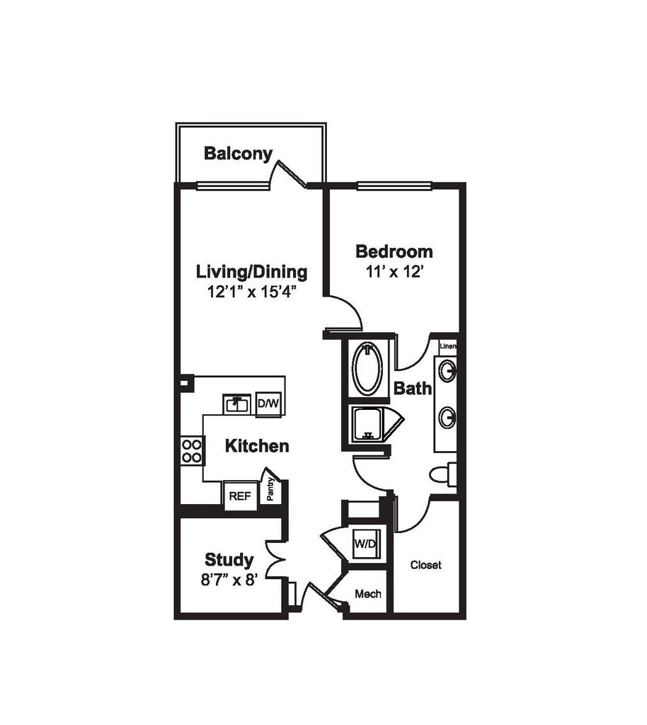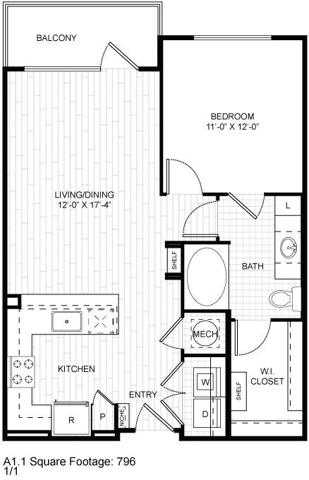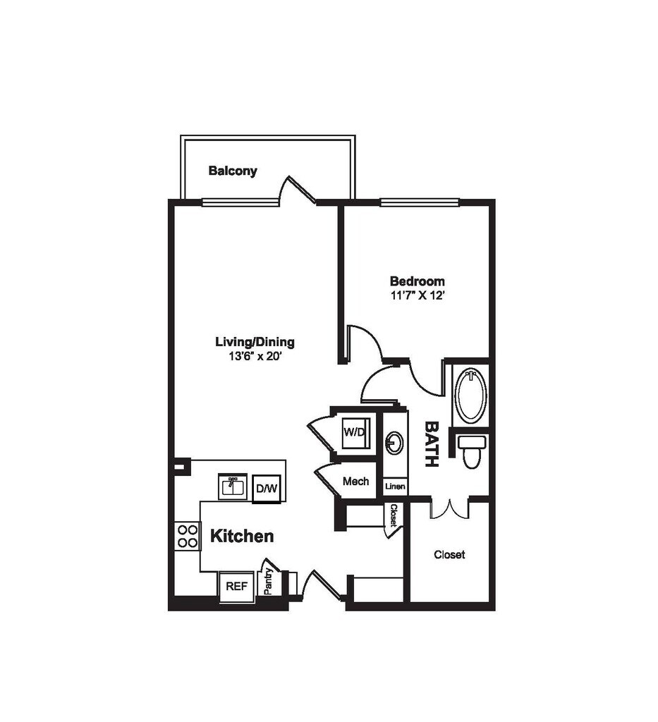 Apartment Model: A1From $1,7891 Bedroom, 1 Bath, 723-735 sq ftAvailable Now![]()