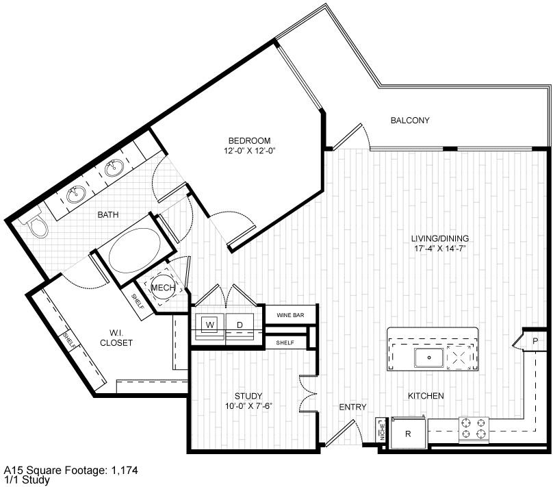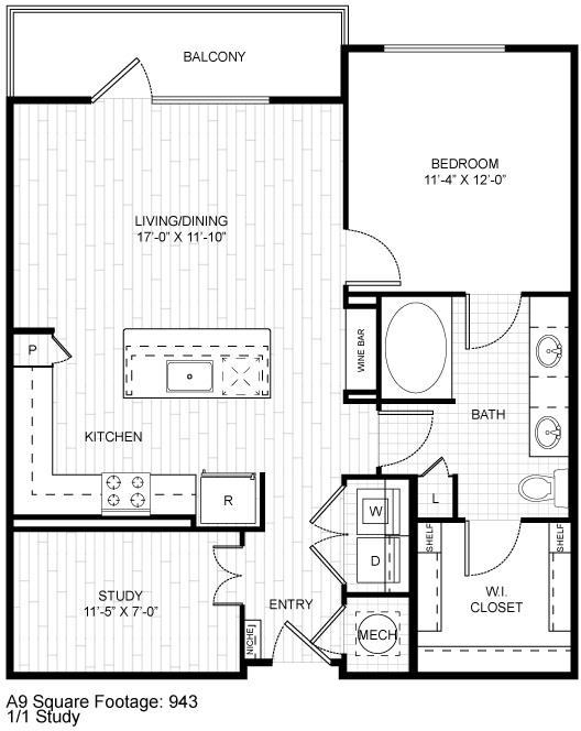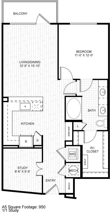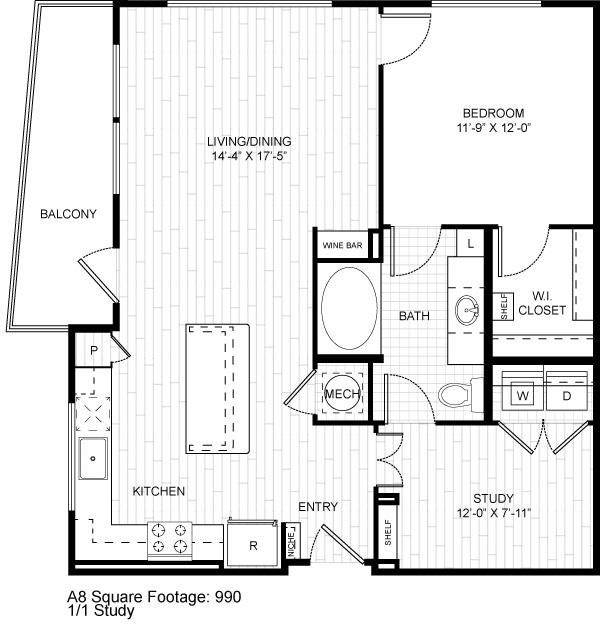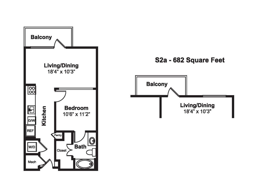 S1 - Floorplan 2 Apartment Unit: 1125Apartment Model: S1$1,7441 Bedroom, 1 Bath, 587 sq ftAvailable NowFloorplan A1