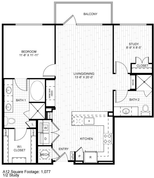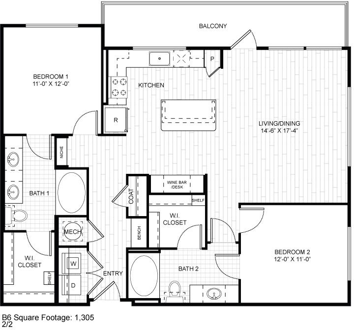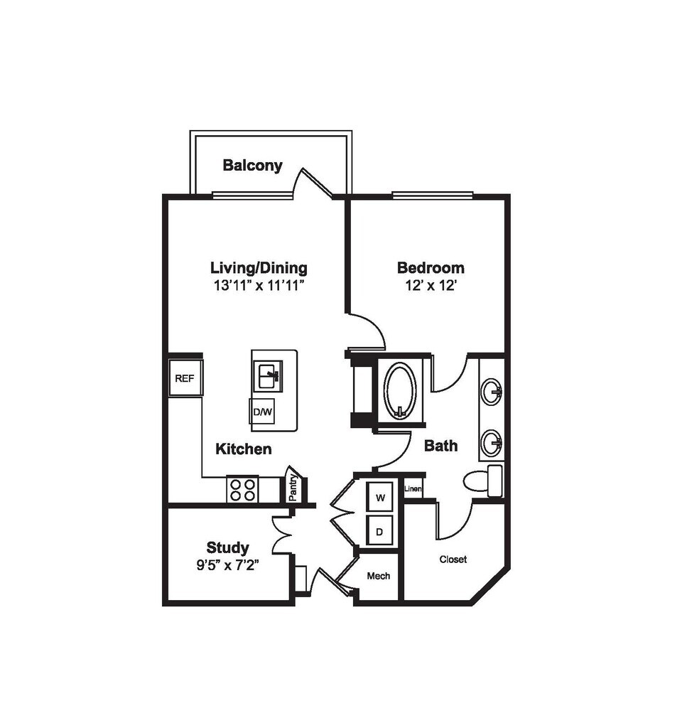 1 Bed, 1 Bath, 723-735 sq ftAvailable NowModel Gallery