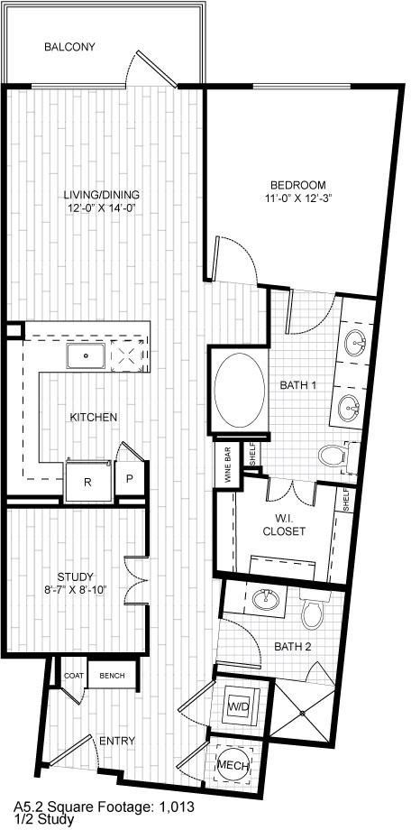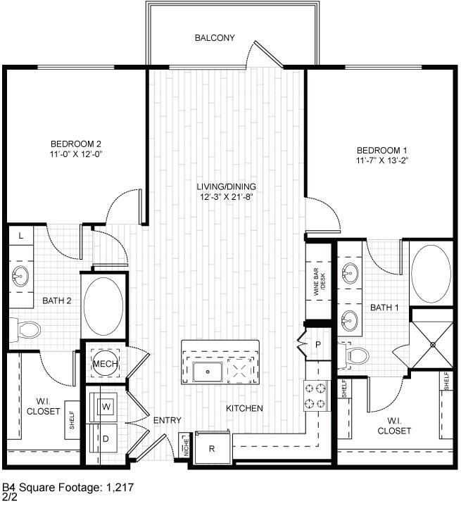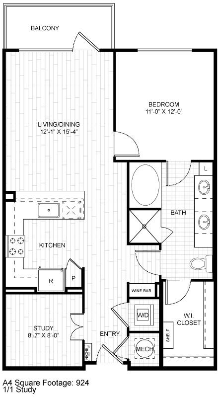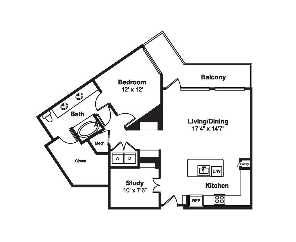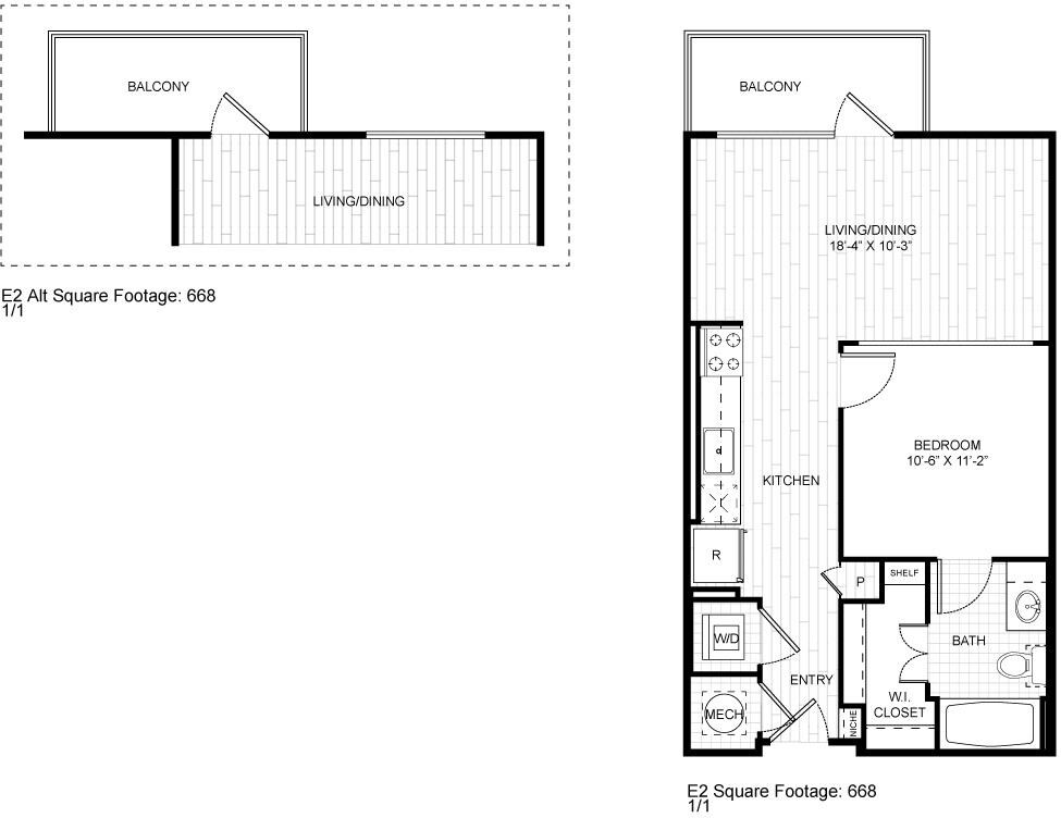 S4 - Floorplan 2 Apartment Unit: 2401Apartment Model: S4$1,7341 Bedroom, 1 Bath, 661 sq ftAvailable NowFloorplan S1