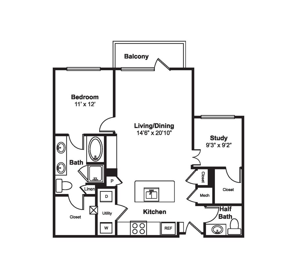 1 Bed, 1 Bath, 587 sq ftAvailable NowModel Gallery