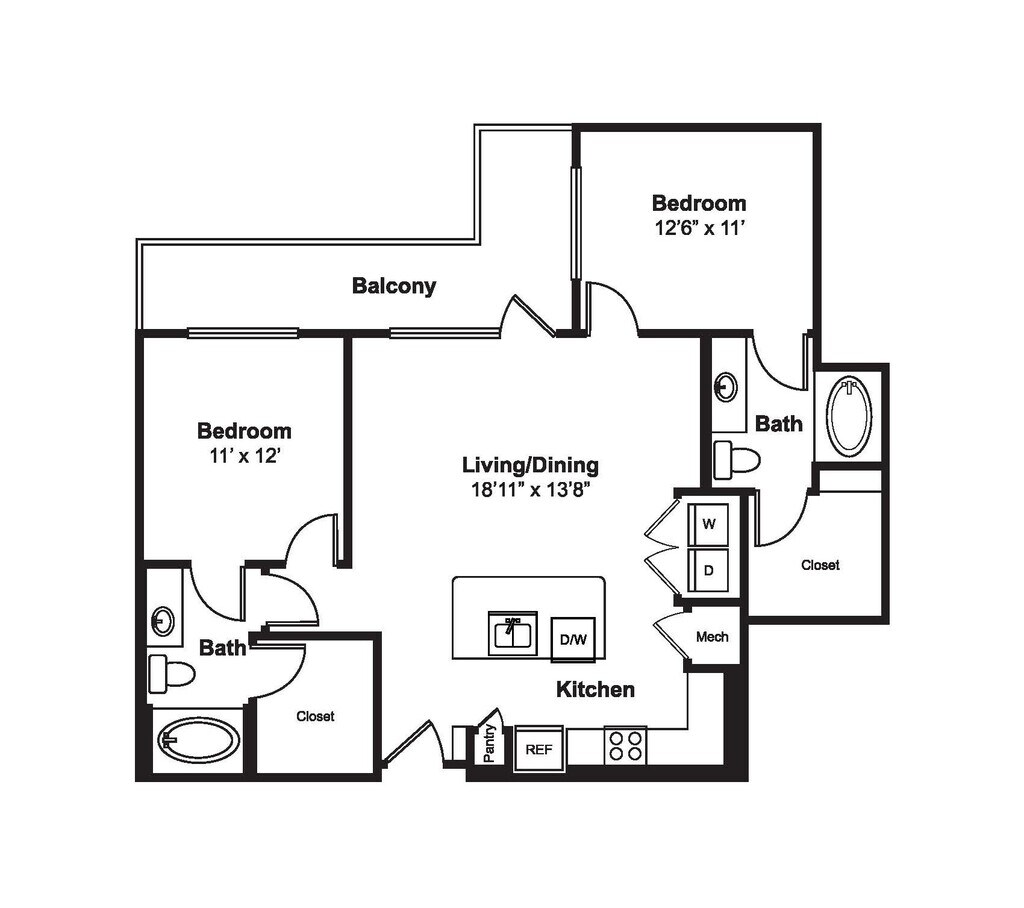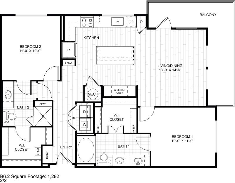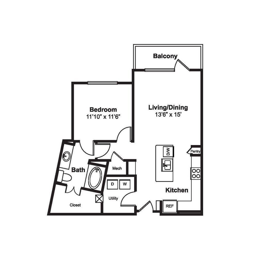 1 Bed, 1 Bath, 661 sq ftAvailable NowModel Gallery