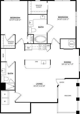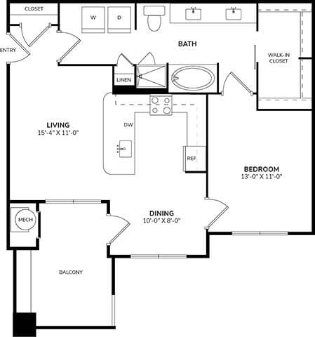 Apartment Model: A1From $1,5291 Bedroom, 1 Bath, 703 sq ftAvailable Now![]()