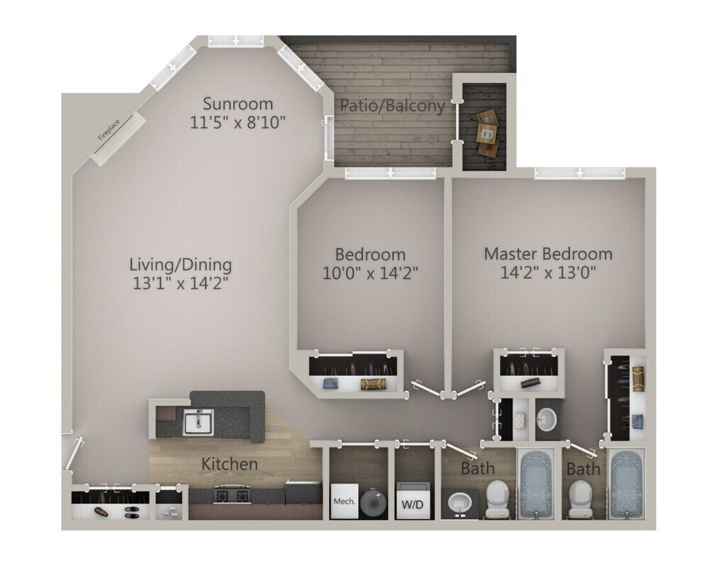 1 Bed, 2 Baths, 1056 sq ftAvailable NowModel Gallery