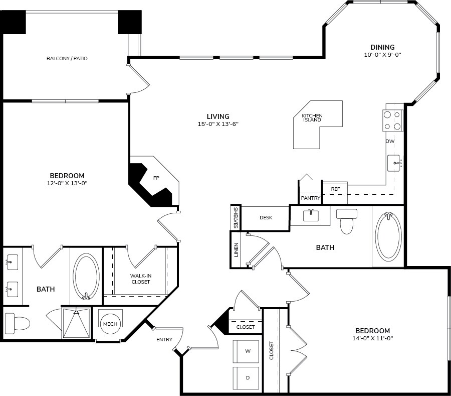 Apartment Model: Fox PointFrom $1,5451 Bedroom, 1 Bath, 703-769 sq ftAvailable Now![]()