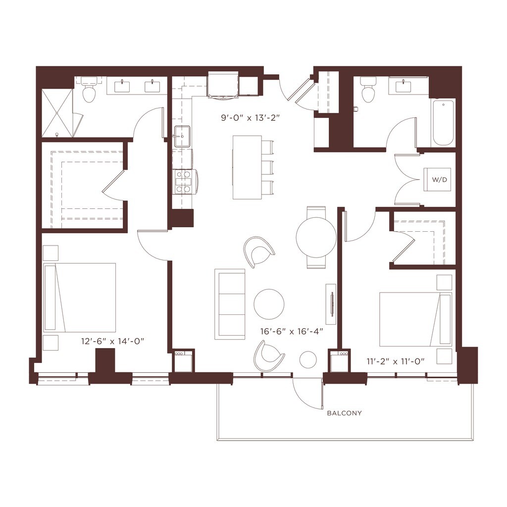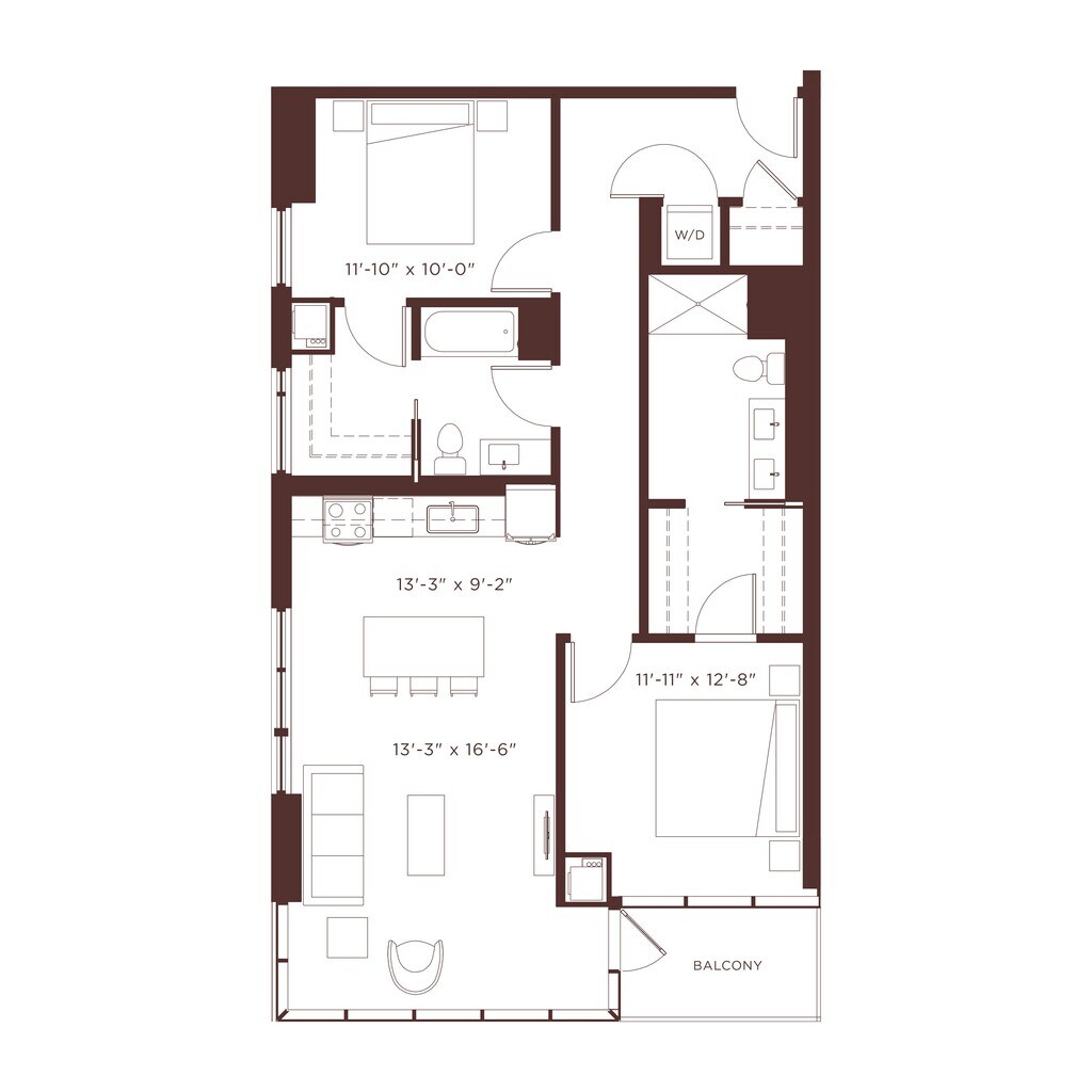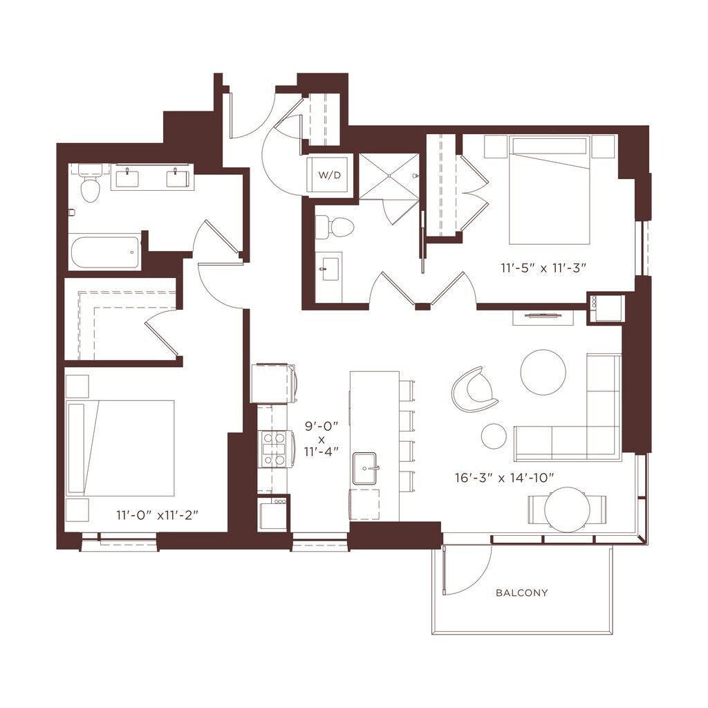 PH1 - Floorplan 1 Apartment Unit: 1108Apartment Model: PH12 Bedroom, 2 Bath, 1105 sq ftAvailable NowFloorplan B2