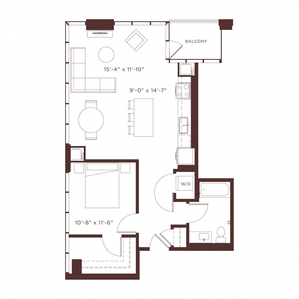 1 Bed, 1 Bath, 690 sq ftModel Gallery