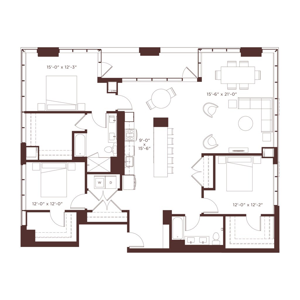 Apartment Model: PH12 Bedroom, 2 Bath, 1105 sq ftAvailable Now![]()