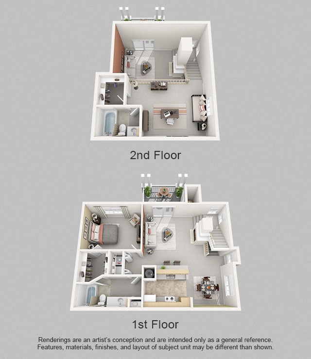2 Beds, 1 Bath, 997-1050 sq ftModel Gallery