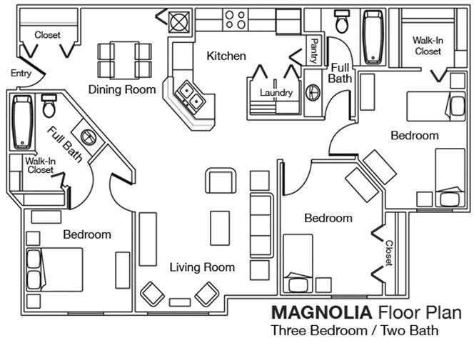 Apartment Model: 2x22 Bedroom, 2 Bath, 1017 sq ftUnavailable2x2 - Floorplan 1 3 Bedrooms