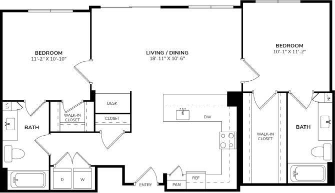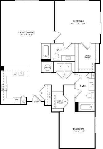 1 Bed, 1 Bath, 858-887 sq ftAvailable NowModel Gallery