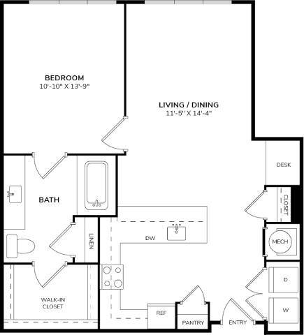 1 Bed, 1 Bath, 703-739 sq ftAvailable NowCheapest 1 BedroomThis is the cheapest 1 Bedroom at this PropertyModel Gallery