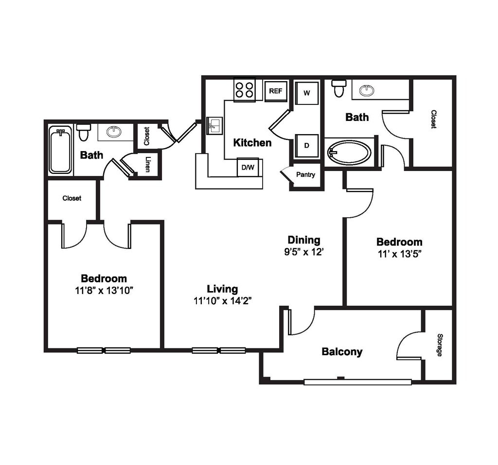 Apartment Model: B2Call For Rates2 Bedroom, 2 Bath, 1140 sq ftAvailable Now![]()