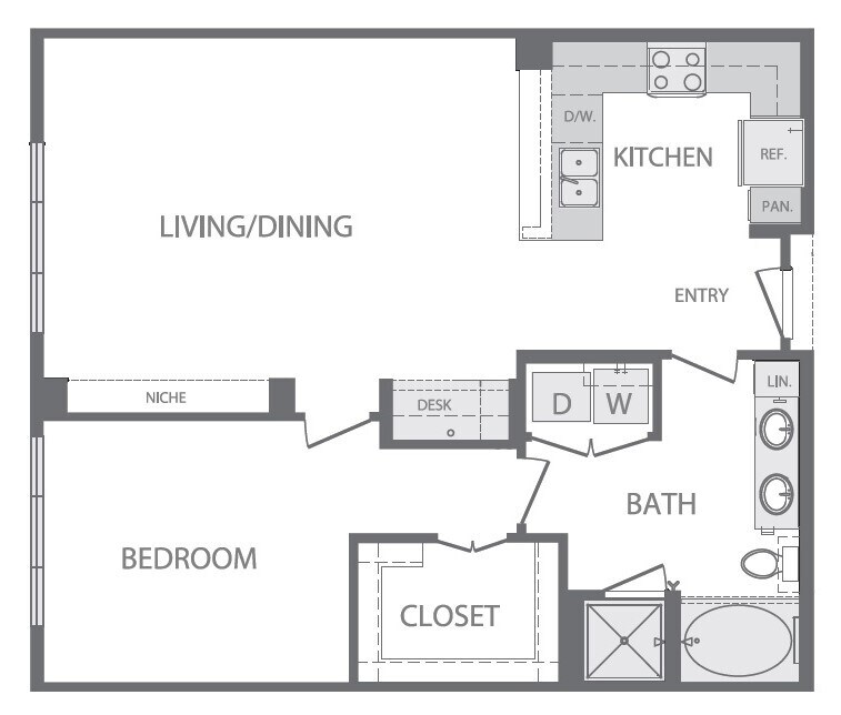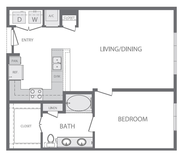 1 Bed, 1 Bath, 708-723 sq ftAvailable NowModel Gallery