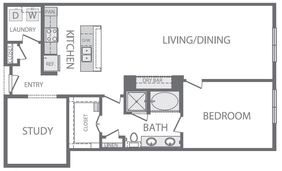 1 Bed, 1 Bath, 669-787 sq ftAvailable NowModel Gallery
