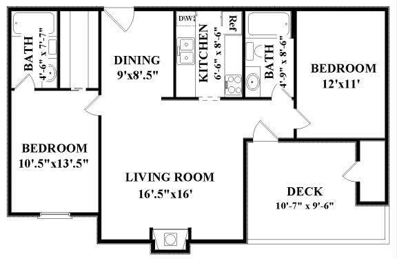 Apartment Model: Aspen2 Bedroom, 2 Bath, 950 sq ftUnavailable![]()