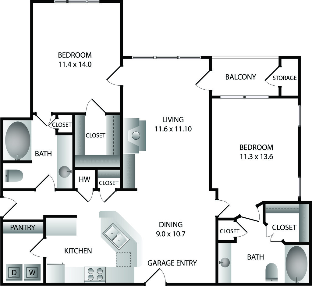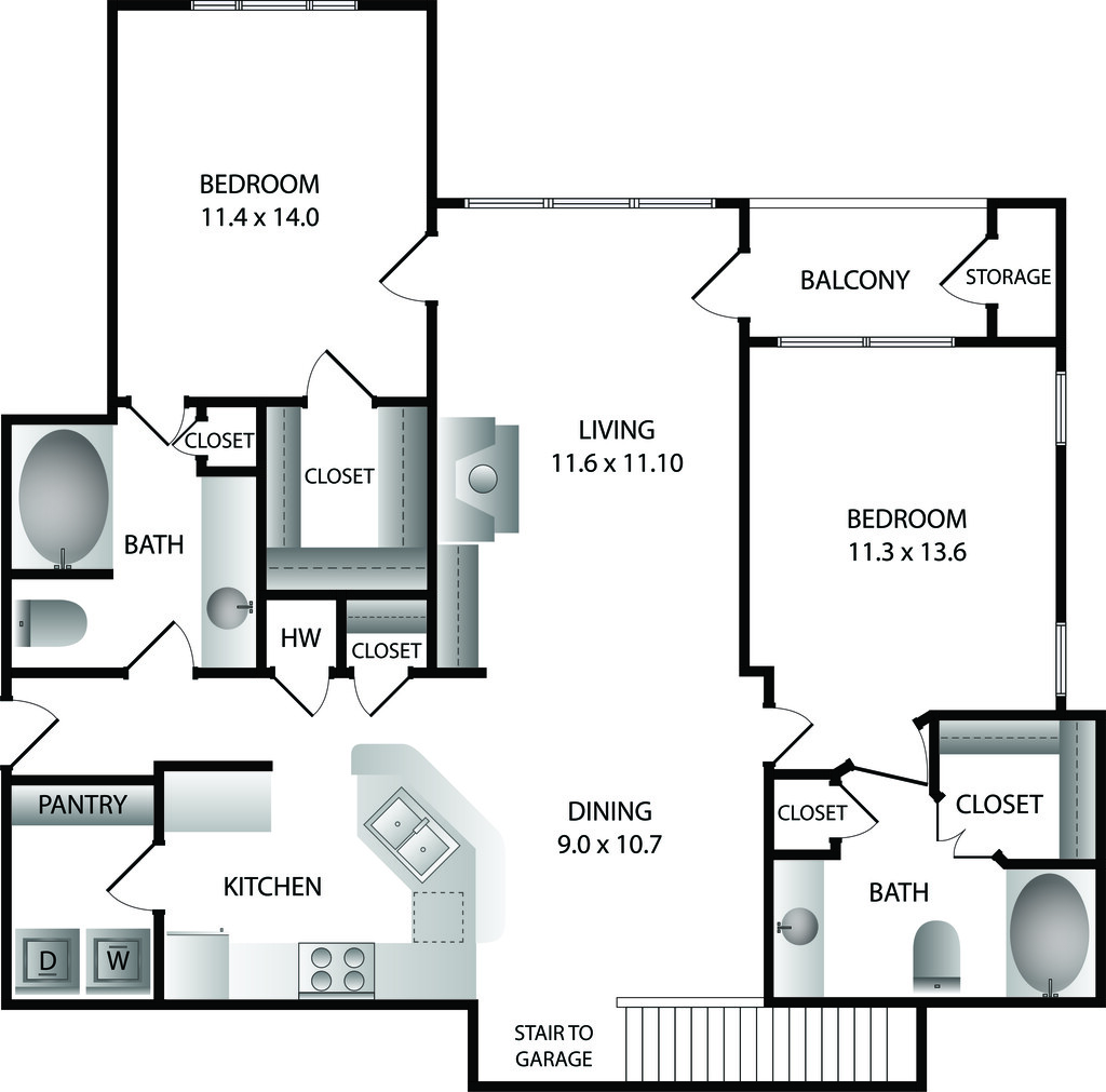 2 Beds, 2 Baths, 1224 sq ftAvailable NowModel Gallery
