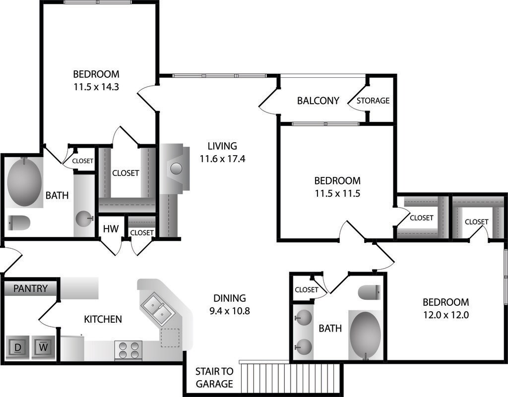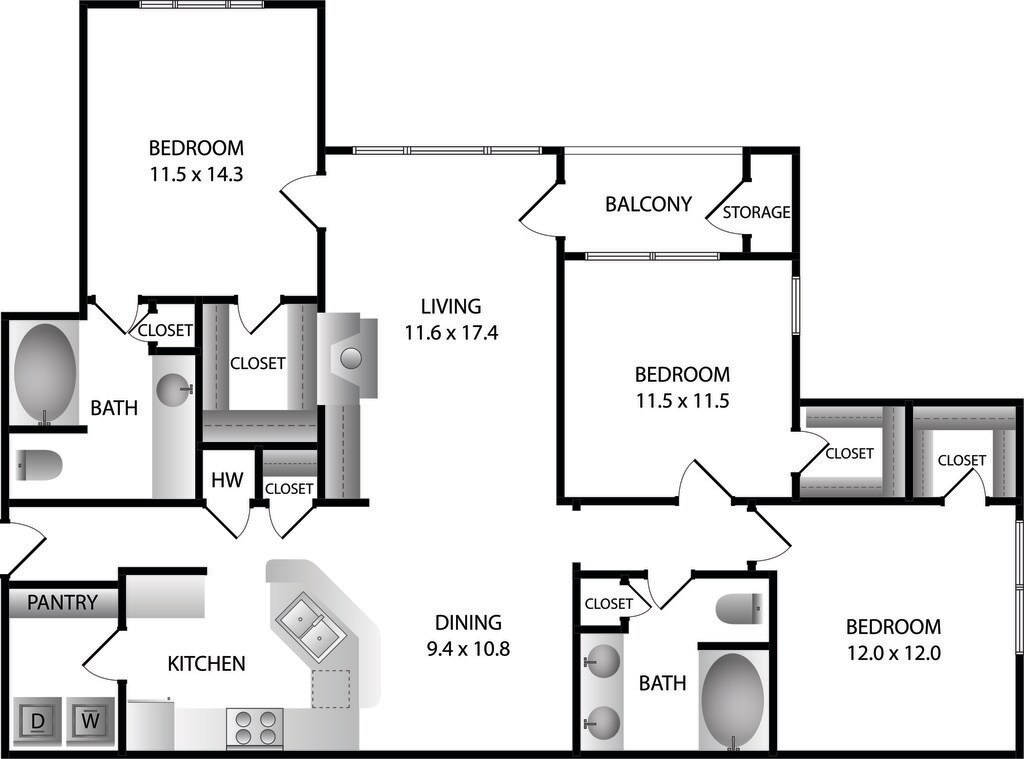 - Spacious 1, 2, and 3-Bedroom Apartments