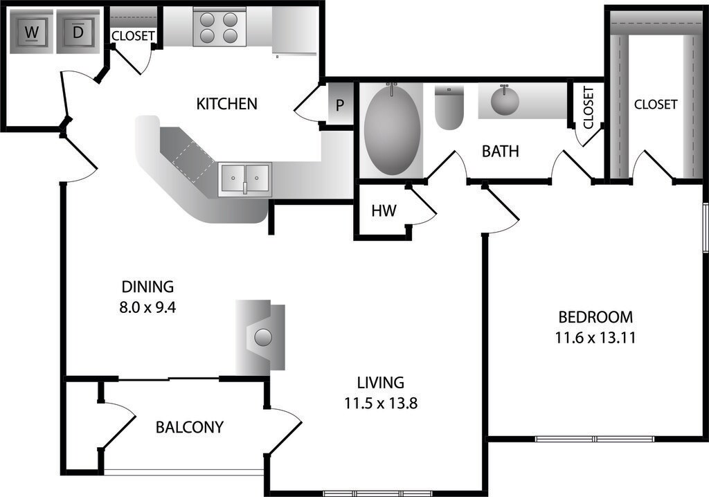 1 Bed, 1 Bath, 880 sq ftAvailable Nov 8Model Gallery