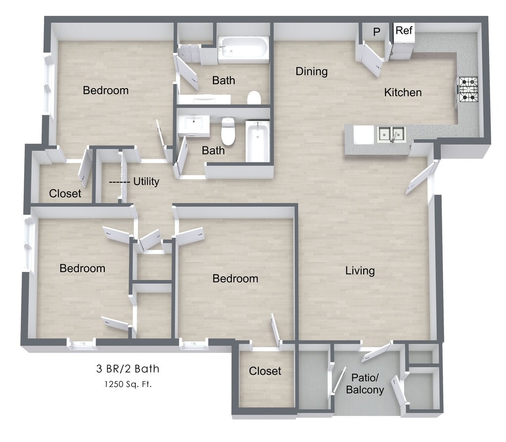3 Beds, 2 Baths, 1250 sq ftAvailable NowModel Gallery