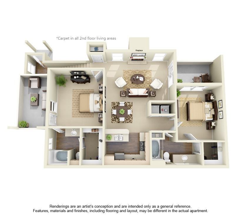 2 Beds, 2 Baths, 1391 sq ftAvailable NowLargest 2 BedroomThis is the largest 2 Bedroom at this PropertyModel Gallery