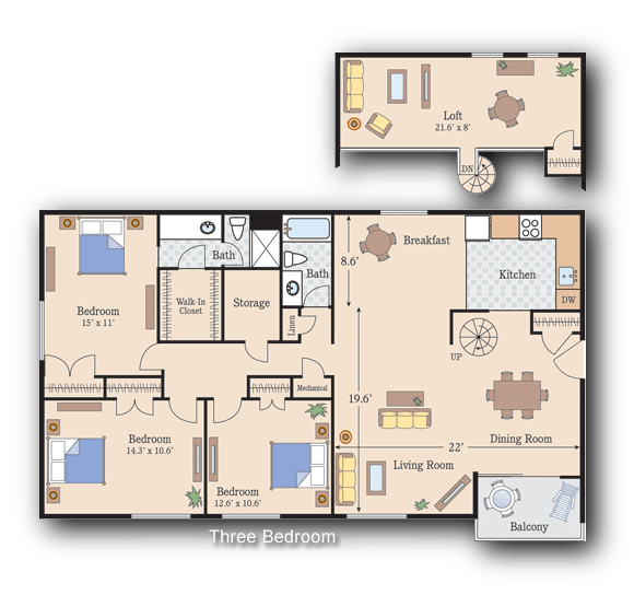 3 Bedroom 2 Bath - Floorplan 1 3 Bedroom 2 Bath Loft