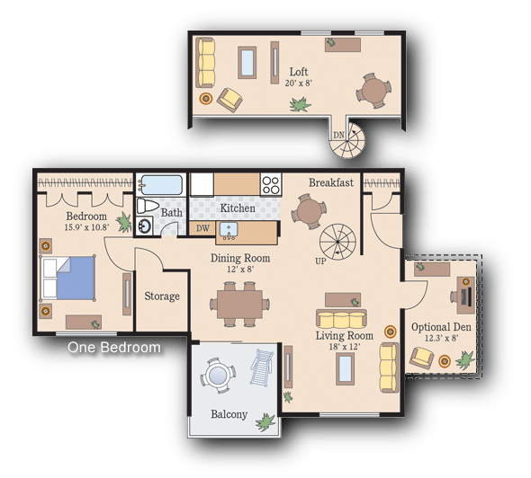 1 Bedroom 1 Bath with Den - Floorplan 1 2 Bedrooms