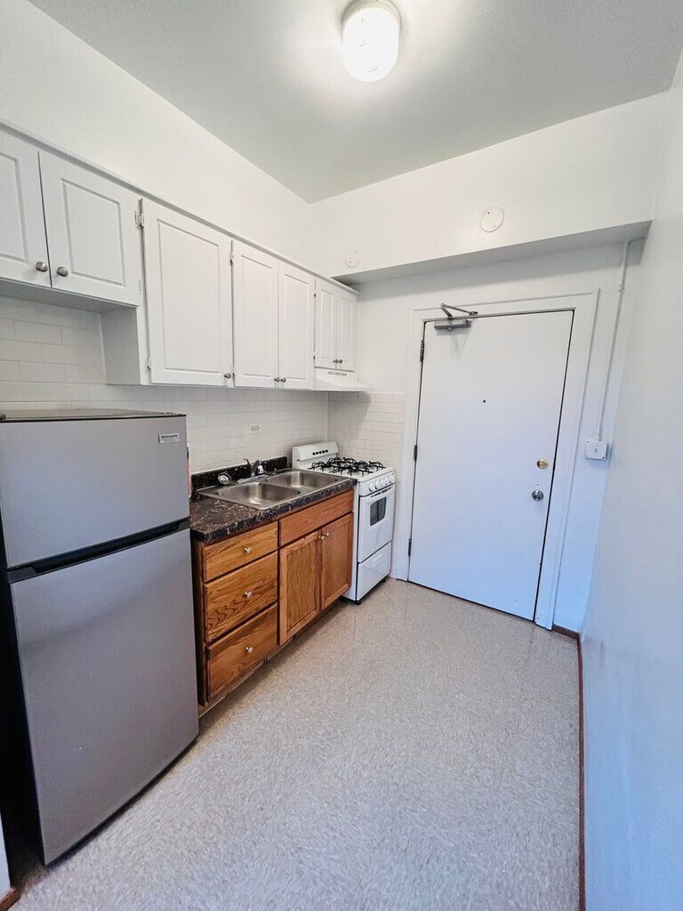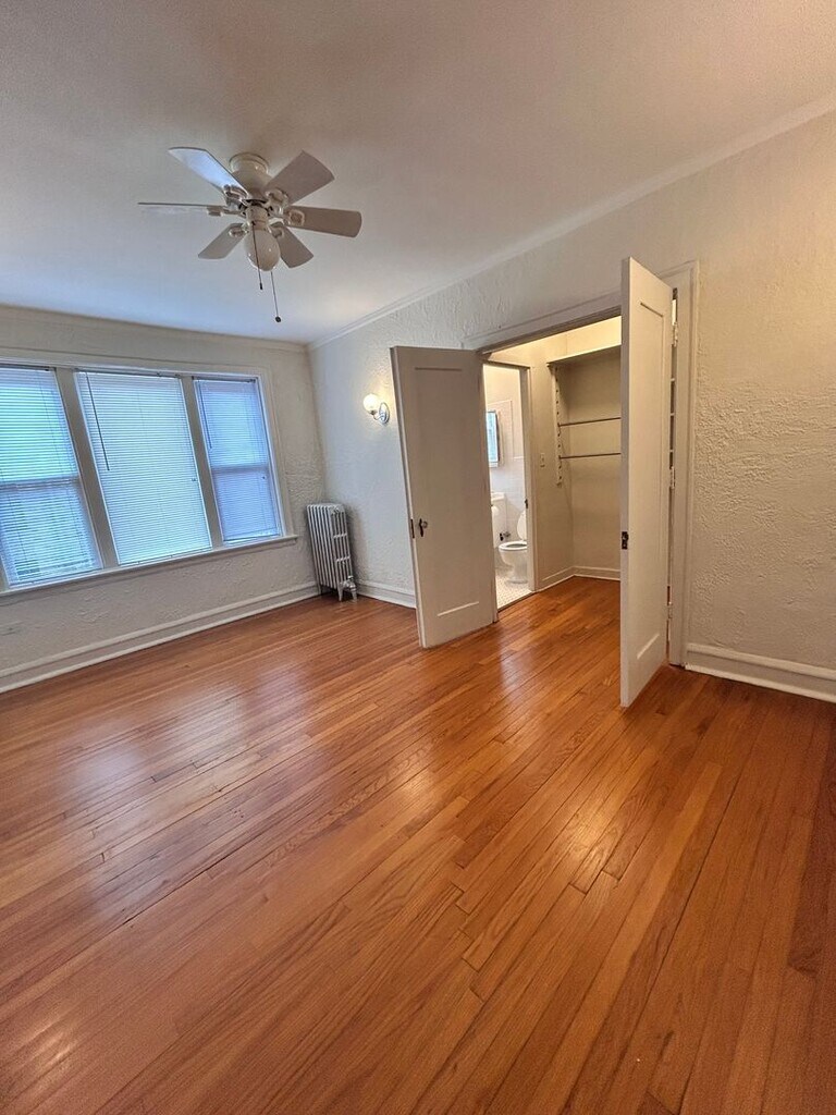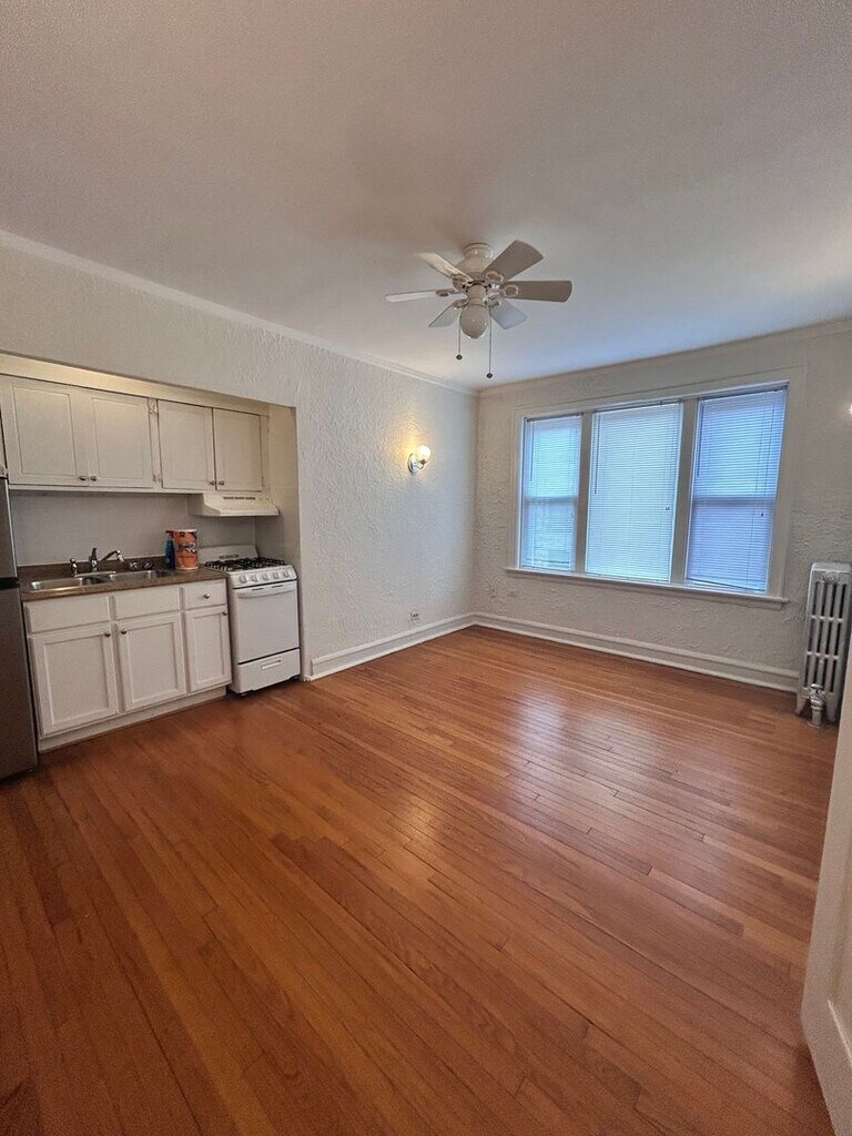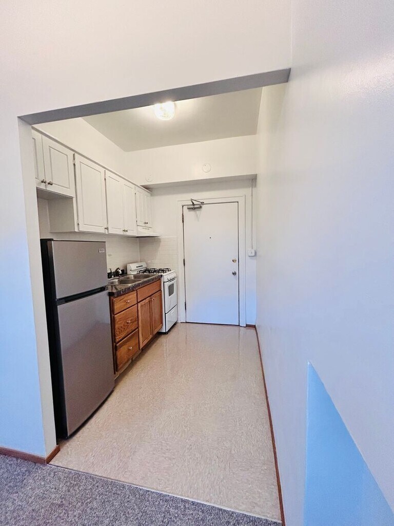 Studio Includes all utilities Carpeted floors High Ceilings Generous Storage Space Eat In Kitchen
