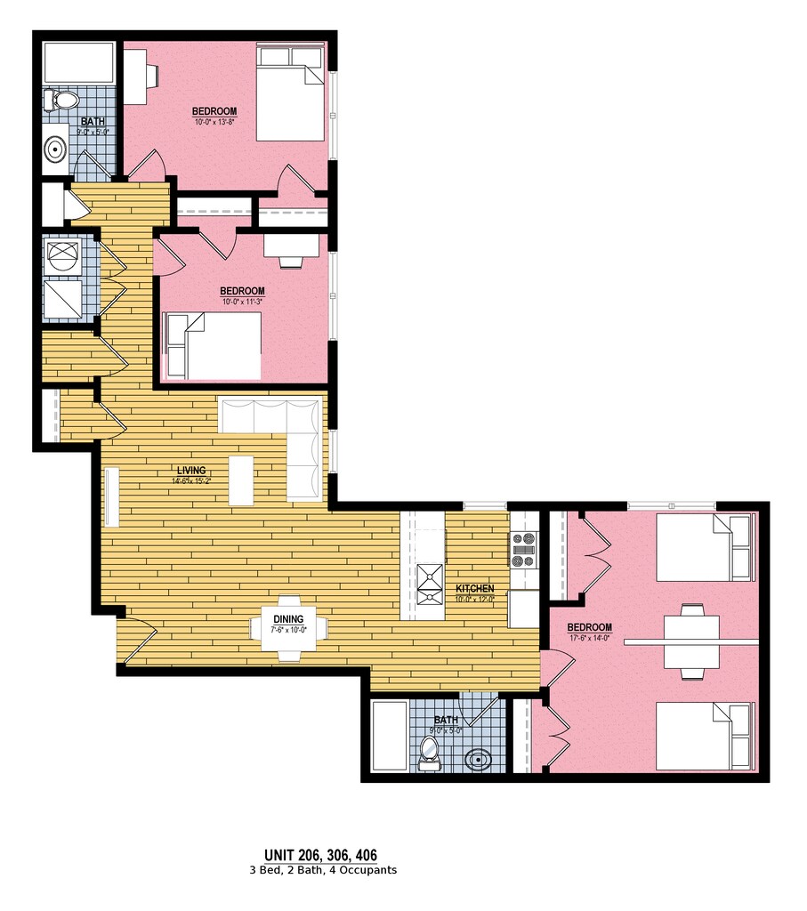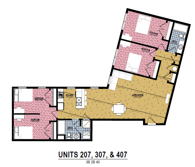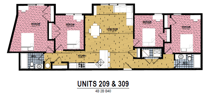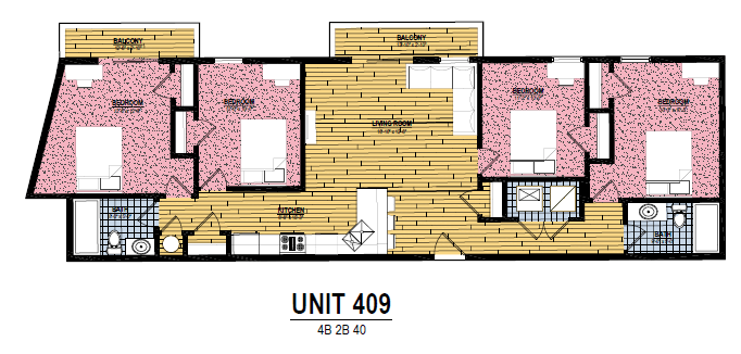 5 Bedroom 3 Bath - Floorplan 2 Apartment Unit: 549-109Apartment Model: 5 Bedroom 3 Bath$2,4025 Bedroom, 3 Bath, 1900 sq ftAvailable Now