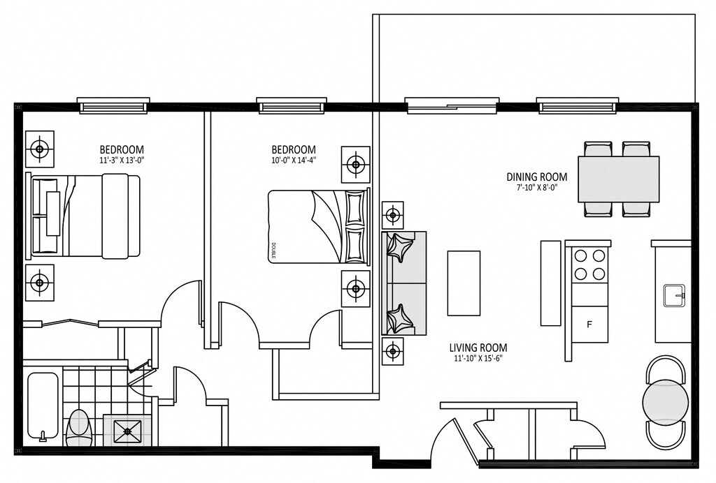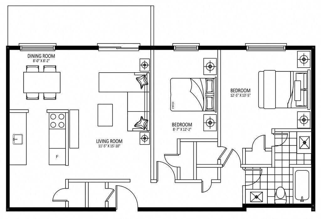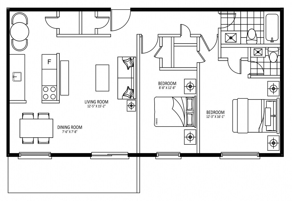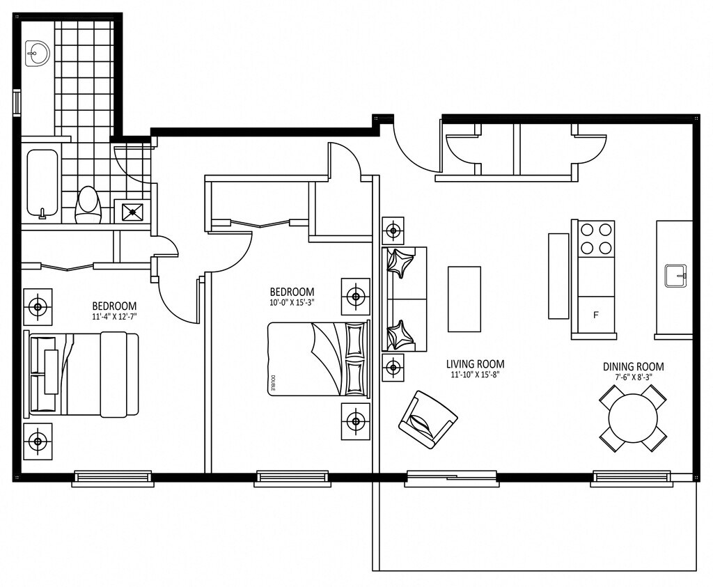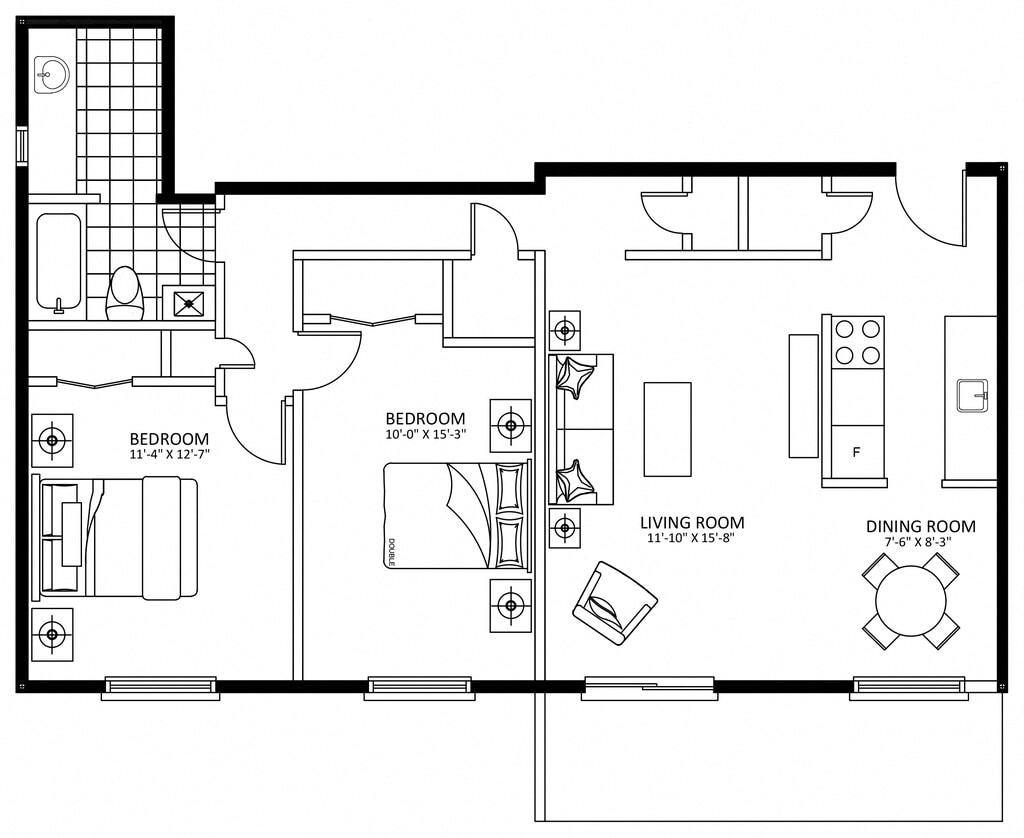Apartment Model: 2 Bedroom Promotional Price For First 7 Months*$1,5842 Bedroom, 1 Bath, sq ftAvailable Now![]()