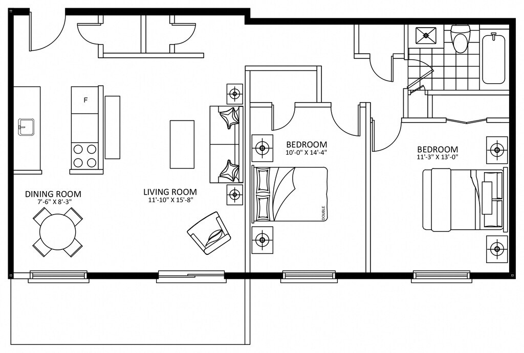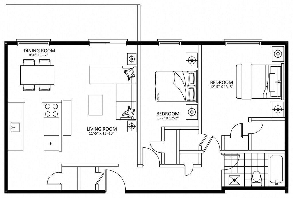 2 Beds, 1 Bath, 970 sq ftAvailable NowModel Gallery