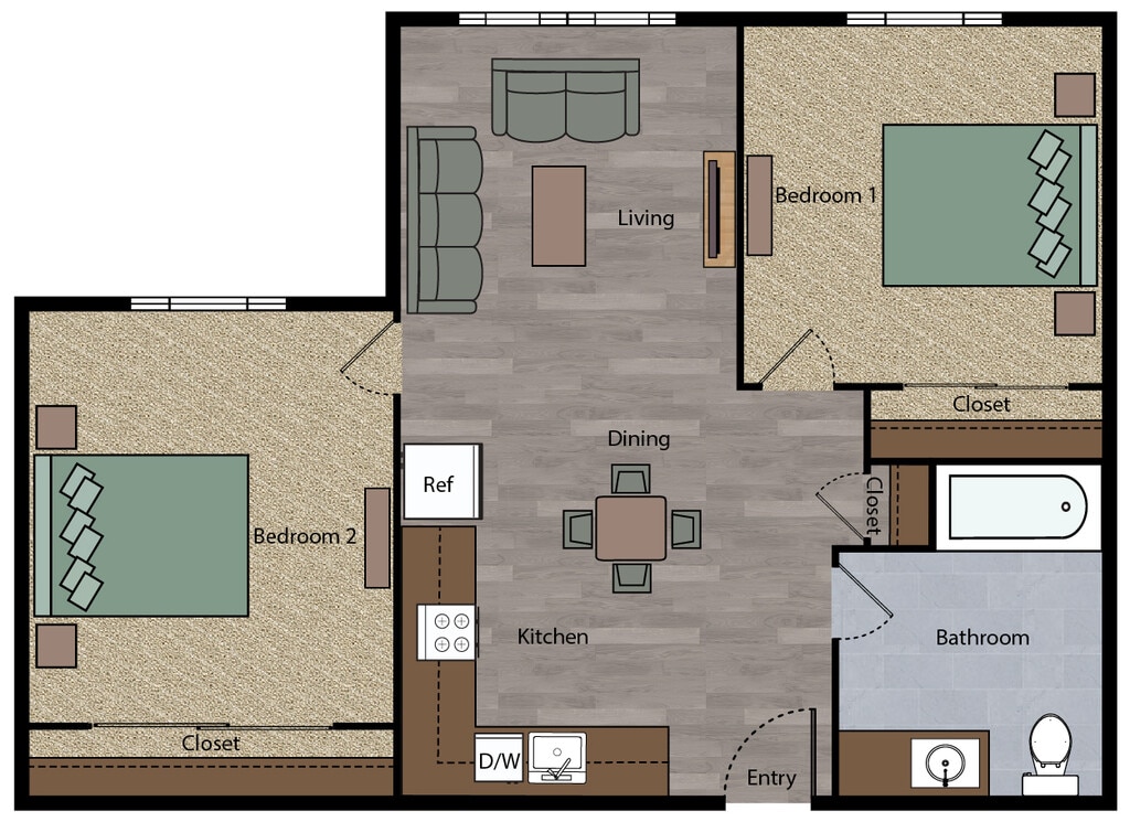 2 Beds, 2 Baths, 755-777 sq ftModel Gallery
