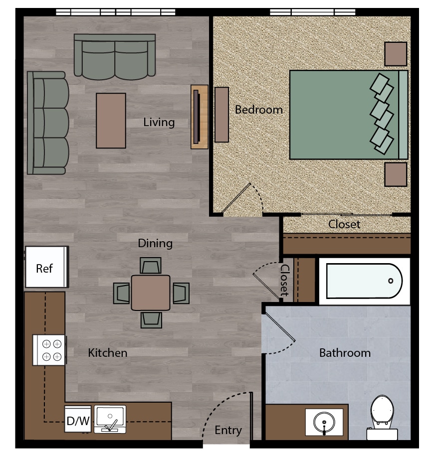 1 Bed, 1 Bath, 565-755 sq ftModel Gallery