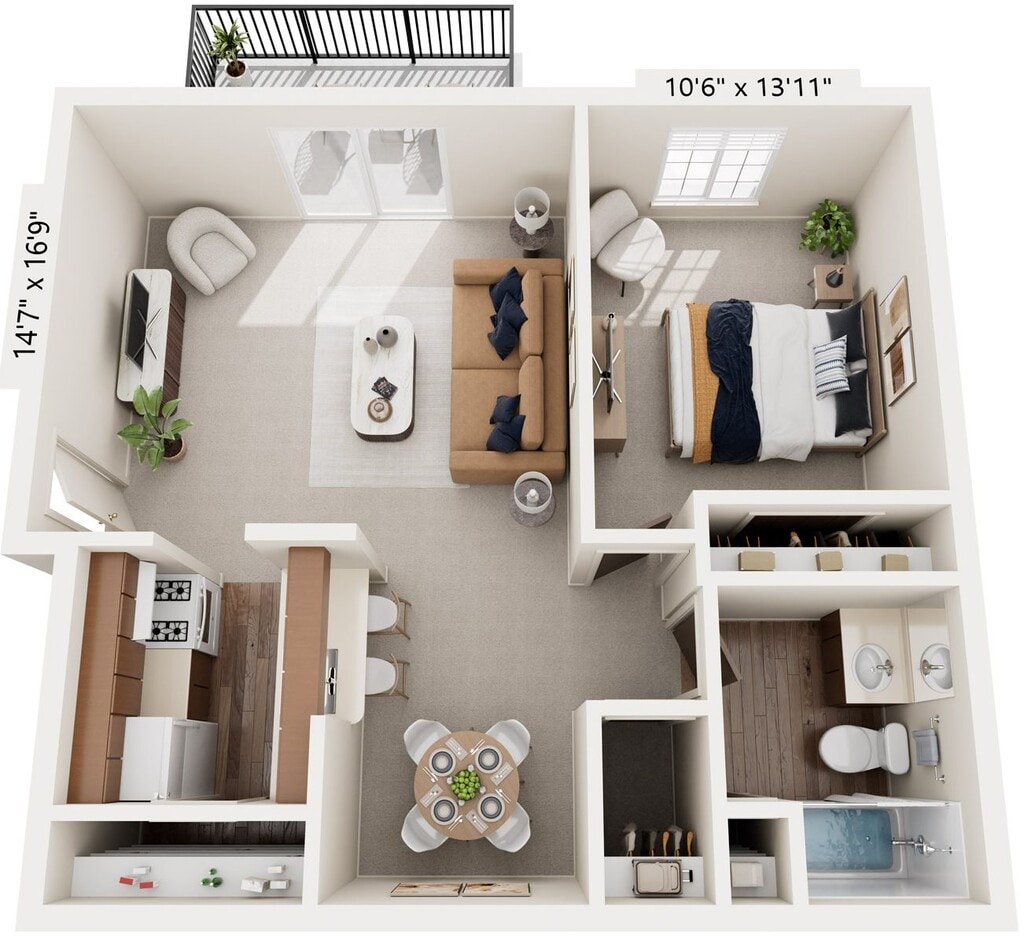 1 Bed, 1 Bath, 611-626 sq ftAvailable Nov 1Model Gallery