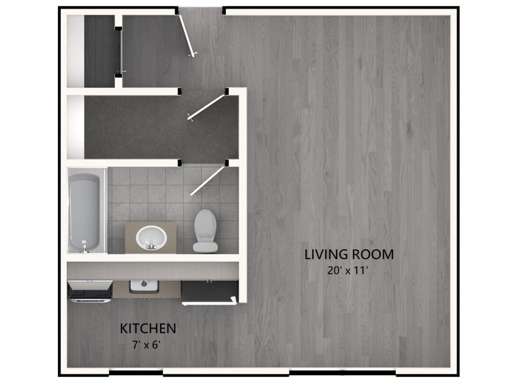 Studio, 1 Bath, 375 sq ftModel Gallery
