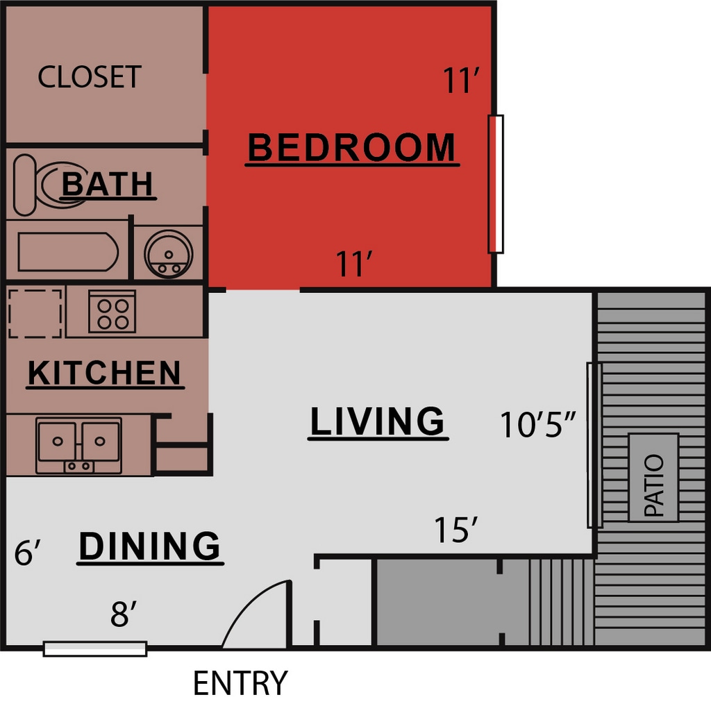 1 Bed, 1 Bath, 660 sq ftAvailable NowLargest 1 BedroomThis is the largest 1 Bedroom at this PropertyModel Gallery