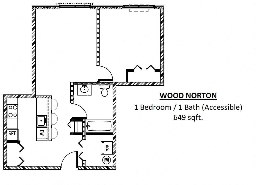 Modern - 1 Bed, 1 Bath Accessible - Floorplan 1 ![]()